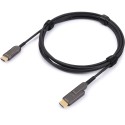 The cable is unidirectional: the source side connector connects to the source, and the display side connects to the display. Built-in technology inside the connectors actively converts the electrical HDMI signal into an optical signal for transmission, and then back to electrical for display.