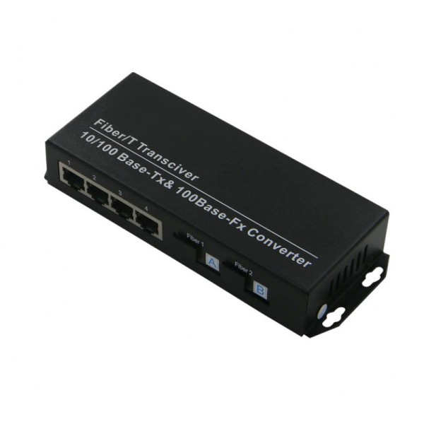 Single Fiber Fast Ethernet Standalone WDM / BiDi Fiber Media Converter, 2-port Fiber & 4-port RJ45, Tx:1550nm/Rx:1310nm, Singlemode, 20km